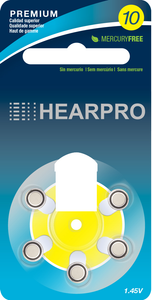 HEARPRO Size 10 Long-Lasting Hearing Aid Batteries 60 Pack - Mercury-Free - Zinc Air Technology - Made in USA - Plus Keychain Battery Case