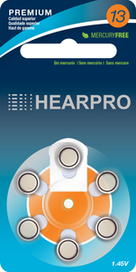 HEARPRO Size 13 Long-Lasting Hearing Aid Batteries 60 Pack - Mercury-Free - Zinc Air Technology - Made in USA - Plus Keychain Battery Case
